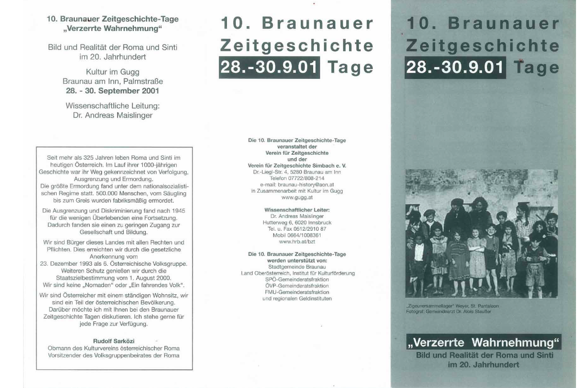 Roma und Sinti im Fokus: Die 10. Braunauer Zeitgeschichte-Tage 2001 beleuchteten Geschichte, Sprache, Politik und kulturelle Darstellung dieser Bevölkerungsgruppe in Österreich und Europa. Eröffnet wurde die Tagung von Rudko Kawczynski.